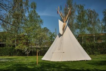 We base our teepees on Dakota-style teepees with an ovoid base ranging in size from 3 to 9 metres. The most common size is between 5 and 6 metres. This size provides you with plenty of room for sleeping, free movement and possible visitors, including sitting by the fire.